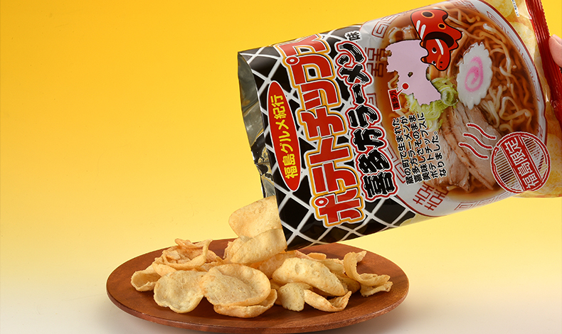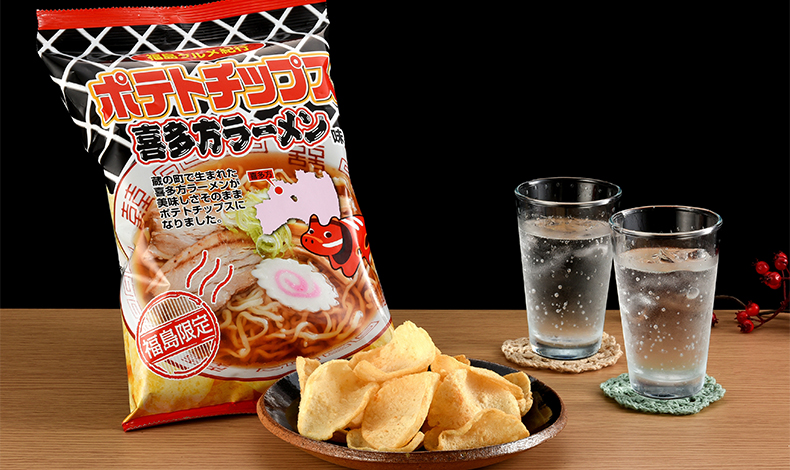 「喜多方拉麵洋芋片」是福島當地限定零食,使用馬鈴薯泥與米混合製成,加入日本三大拉麵之一的喜多方拉麵口味調味而成的洋芋片,恰到好處的鹽味,令人忍不住一口接一口。