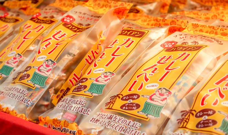 與一般的仙貝不同,使用咖哩醃製成的仙貝,濃郁的咖哩口感是最大的特色,一包內含有咖哩與起司咖哩兩種口味,這一款仙貝也是東北當地物產大會上唯一被選為福島代表的逸品。
