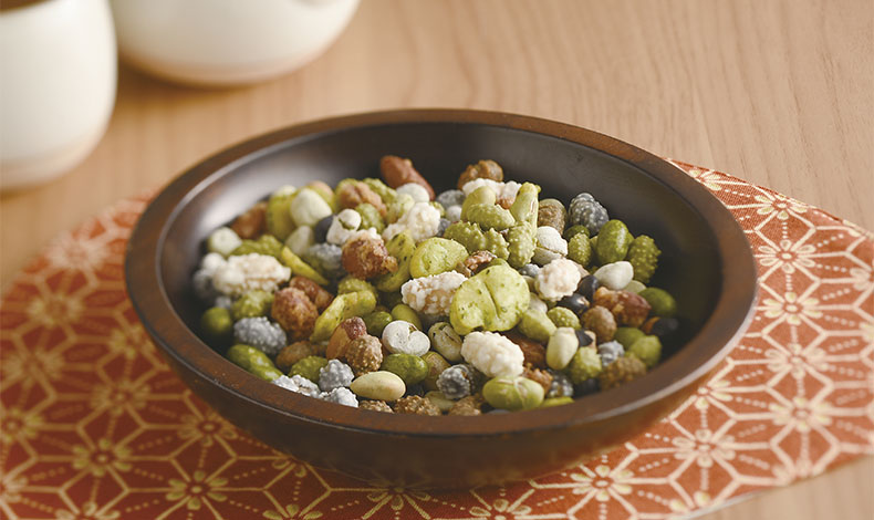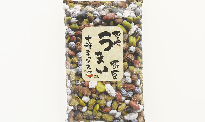 OKUYA公司所出產的商品,一包裡面含有黑豆、青豆、蠶豆、豌豆、南瓜子、落花生等綜合豆菓子,非常的美味好吃,一次可享受多種口味,是一款老少咸宜的零嘴,也是OKUYA公司第一名的人氣商品。