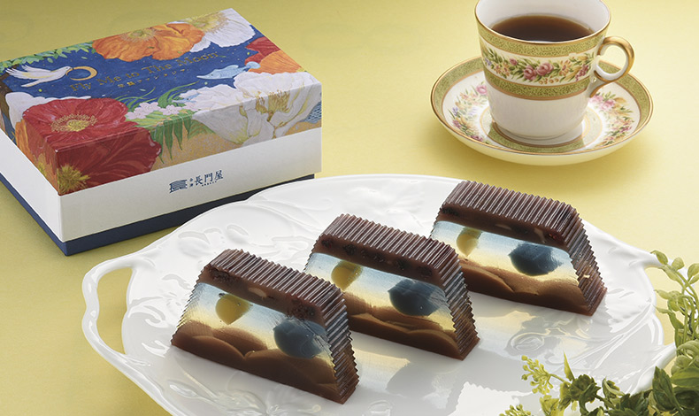 會津若松市的老鋪和菓子店「本家長門屋」的創意和菓子。「Fly Me to The Moon 羊羹Fantasia」,顛覆一般民眾對羊羹的印象。由六種類原料所製成的羊羹,不僅味道不同每切一片每個斷面的圖案也各異其趣。說它是創意和菓子,不如說是吃的藝術品。一次可同時擁有視覺和味覺享受的和菓子,難怪一推出就在網路上造成話題!