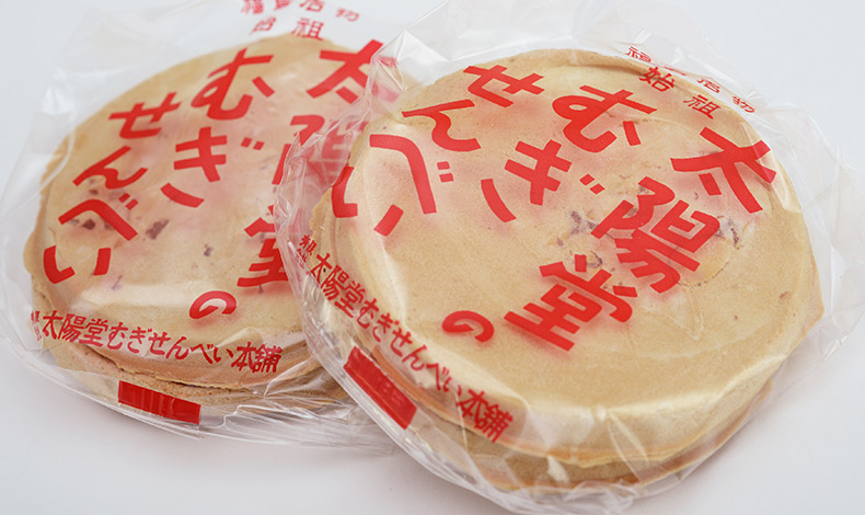 從昭和時代創業以來就深受當地人喜愛的古早味零食,這款只使用小麥粉與落花生所製成的仙貝,味道樸實越嚼越有滋味,深受當地人喜愛,太陽堂小麥仙貝在2019年也獲選為JR東日本人氣伴手禮之一。