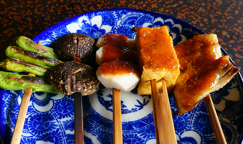 在日式圍爐現烤出來的味噌田樂,超級美味!令人忍不住一口接著一口!保證一吃成主顧!