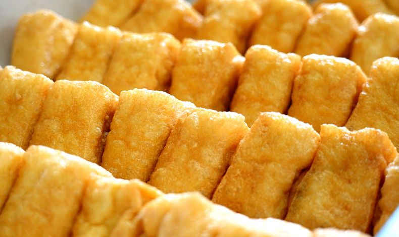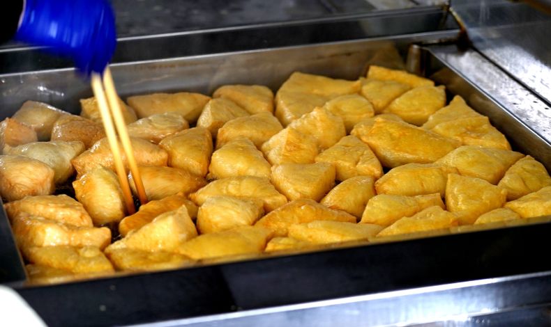 三春町特產「三春三角油炸豆腐」,口感鬆軟、厚實飽滿。相傳其三角形的外觀,是源自於過去位於三春町的城池「舞鶴城」,仿照鶴的形狀而製成。以傳統工法,一片一片手工油炸製作而成。