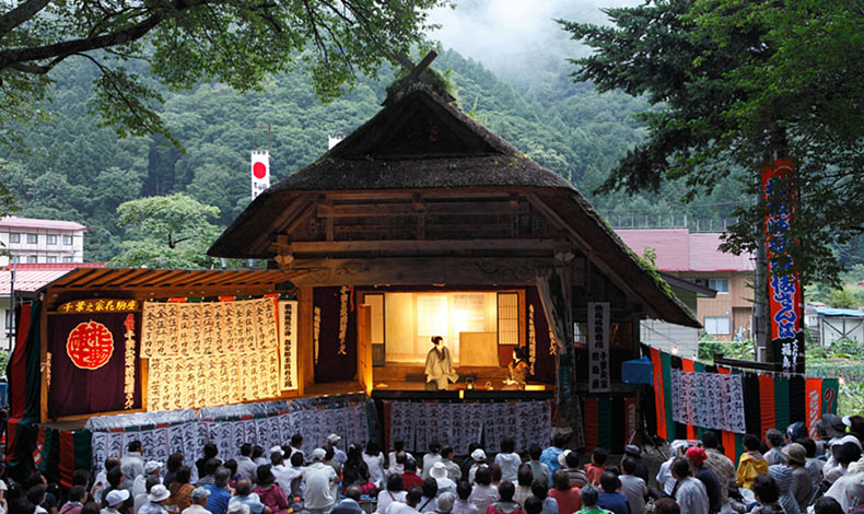 始於江戶時代,每逢春季和秋季的祭祀活動,都會上演歌舞伎以祭祀神靈,檜枝岐歌舞伎已有270年以上的歷史,是國家重要有形民俗文化財。