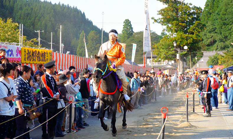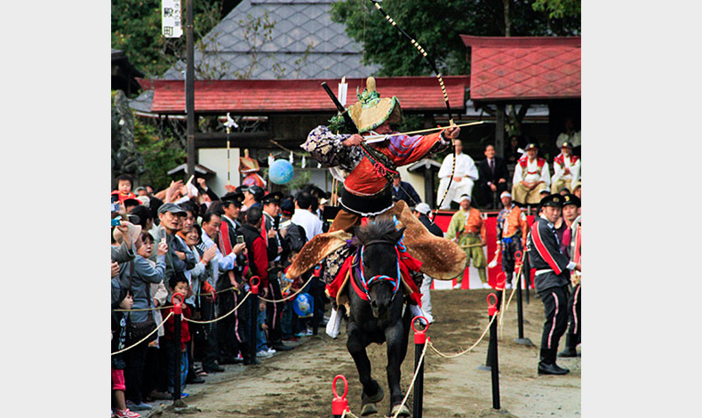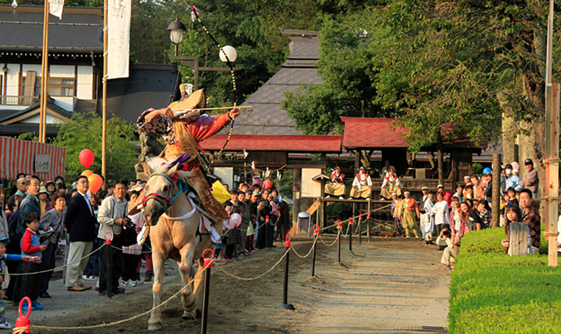 從鎌倉時代傳承至今的傳統祭典,騎乘馬兒奔馳,將箭射向三個指定地方,代表天下太平及五穀豐饒,古殿八幡神社例大祭也被縣指定為重要無形民俗文化財。
