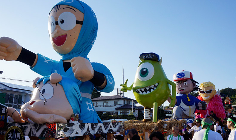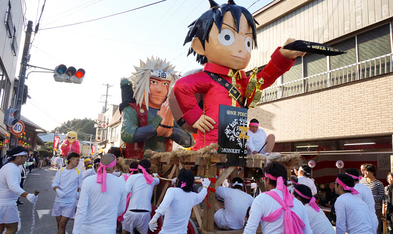 擁有400年歷史的暴走山車祭,年輕人扛著裝飾大型人形的山車,搭配太鼓的聲響互相推擠,非常熱鬧。