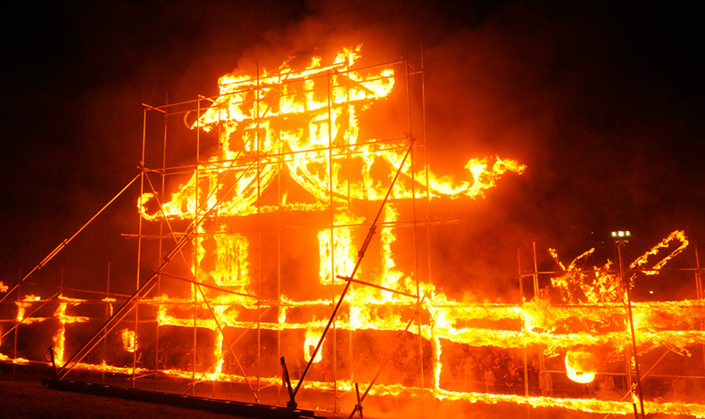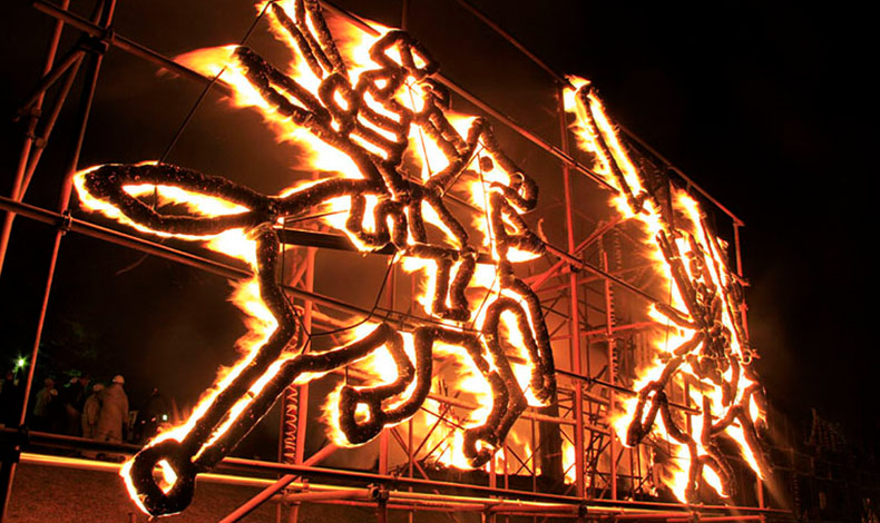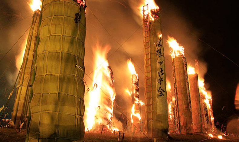 擁有400年歷史的傳統活動,是日本三大火祭之一,用火點亮長10公尺、重3公噸的大松明,多達150位參加者扛著大火把在街上遊行,場面非常的壯觀。