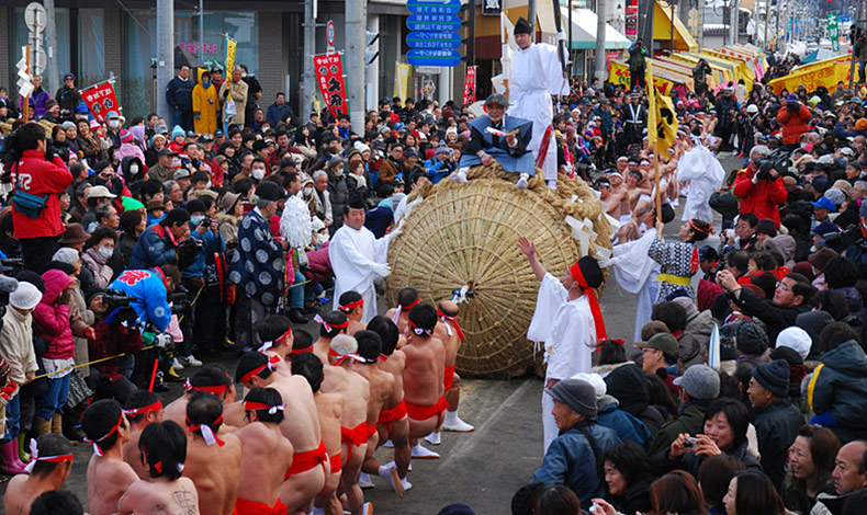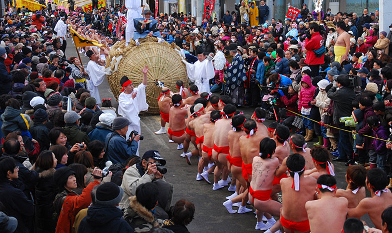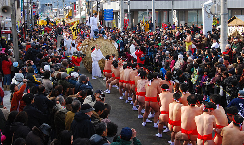 每年1月的第二個星期六在會津美里町所舉辦的會津奇祭,由穿著日式丁字褲的男性分為紅白兩隊,為新的一年開運祈求五穀豐收進行大俵拔河比賽,以紅白兩隊的勝負來占卜新的一年是生意興隆還是五穀豐收。