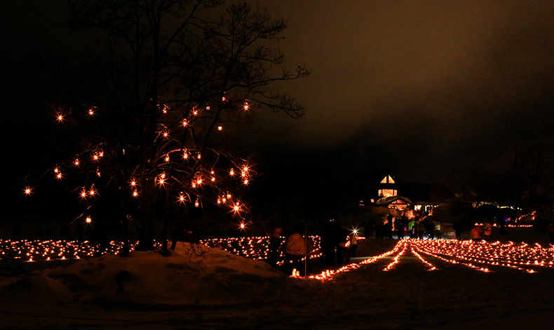2月份的裏磐梯也會舉辦雪祭,在結冰的湖面上點燃近3000根蠟燭,光想像就覺得非常的美麗壯觀,據說點燃的燭光代表著幸福的數量,冬季到裏磐梯除了滑雪之外,參加當地的祭典也是非常的不錯。