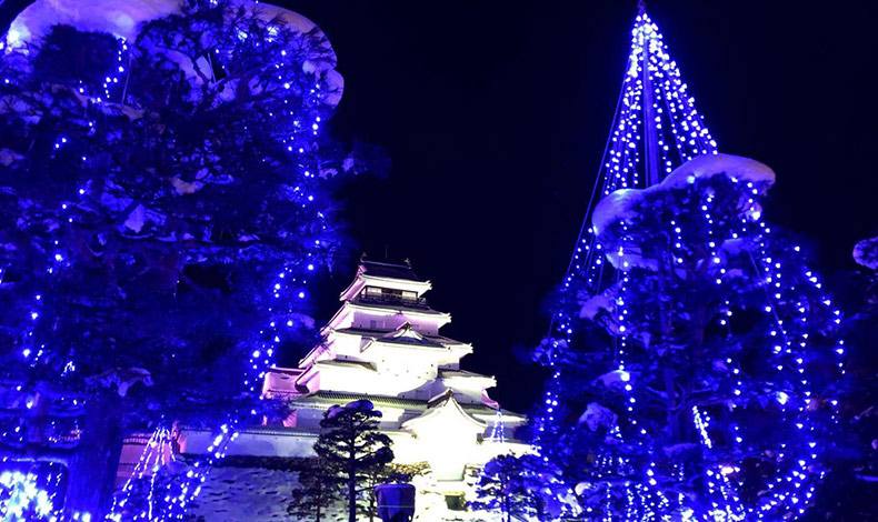 每年的2月中旬到3月上旬會津地區都會舉行光雕秀,鶴之城的雪景配上色彩鮮豔的燈飾,不僅美麗,也讓城堡增添許多夢幻氣息。