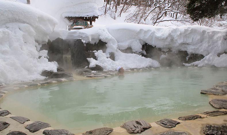 福島的野地溫泉位於標高1200公尺的安達太良山裡,是日本東北美湯之一,飯店中共有六個溫泉可供住客選擇,乳白色的硫磺泉,有助於治癒皮膚疾病,露天風呂四季景色優美,來這邊泡溫泉可以說是人生一大享受。野地溫泉曾獲得日本樂天訂房網票選2015&2016連兩年的冠軍等多項殊榮。