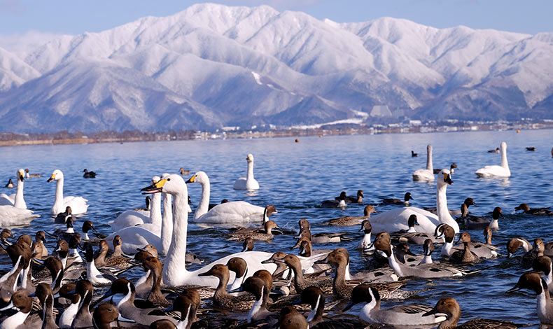 日本國內第四大湖,隸屬於磐梯朝日國立公園,湖水透明清澈映照天空彷彿像一面鏡子,因此又名天鏡湖。四季風景優美,是福島縣著名的觀光景點之一。冬季的豬苗代湖可以看到許多西伯利亞遠渡至此的天鵝聚集在此,是這裡冬季特有的景色。