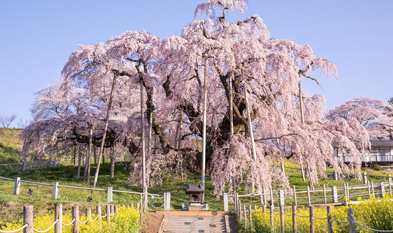 推測樹齡至少1000年以上,為日本國內最大的枝垂櫻,與岐阜縣的淡墨櫻、山梨縣的神代櫻並列為日本三大櫻。同時也是國家天然紀念物。櫻花樹高13.5公尺、枝葉伸展東西寬25公尺,櫻花盛開時如瀑布般垂落向下,因此被稱為「瀧櫻」。除了白天可欣賞之外,櫻花季時有期間限定的夜間點燈,更是美輪美奐,不容錯過。