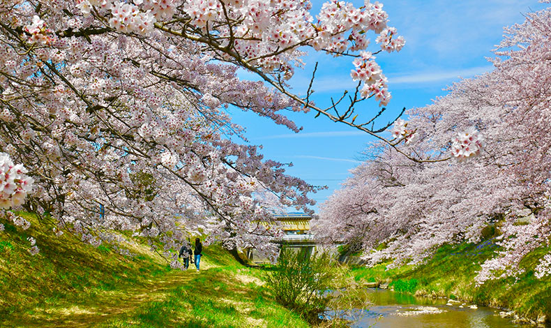 距離喜久田站徒步約3分鐘的賞櫻名所。藤田川兩旁約三公里的染井吉野櫻,在每年的4月中旬至下旬盛開,櫻花倒映在川面的美麗景色,總是吸引很多遊客到此拍照賞櫻。