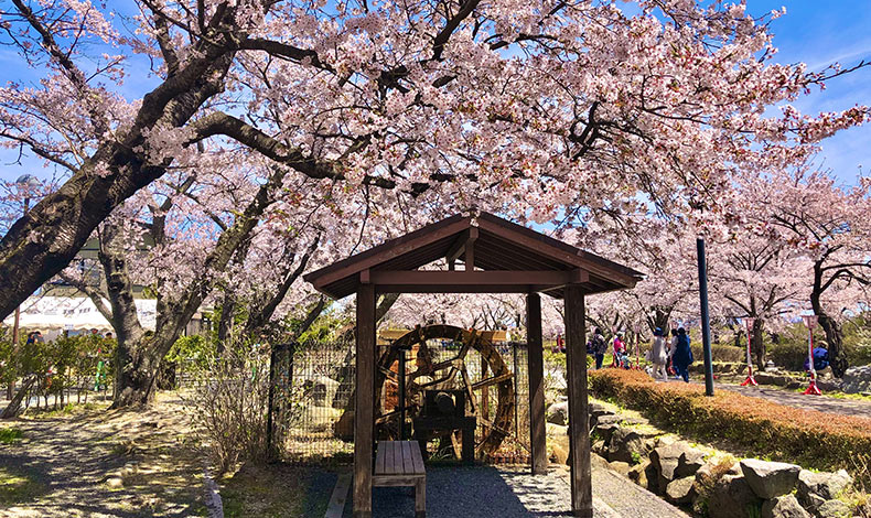 流經郡山市與須賀川市的笹原川,以明神橋附近為中心上下約兩公里,有近1000棵的染井吉野櫻,是由當地居民所種植,每年四月中旬至下旬櫻花盛開時,吸引不少遊客到此賞櫻,配合櫻花季節水車小屋周圍也會舉行夜間點燈,又是一個浪漫賞櫻景點。