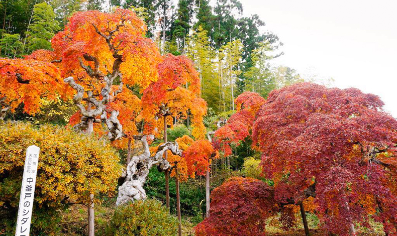 位於磐城市渡邊町中釜戶的觀音堂旁,大小兩棵樹木軀幹彎曲,枝葉如同傘狀擴張,形狀非常的奇特,據說是突變而來的品種,因此非常罕見且珍貴,也被國家指定天然記念物,每年秋季紅葉最佳觀賞時期大約是在11月下旬至12月上旬,這裡算是在福島縣內最晚可以賞楓的景點。
