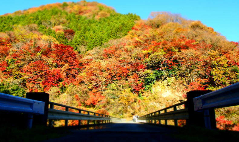鮫川急流流經的著名景勝地,從龍神橋到見返橋約有3公里的散步路線,步行約需45分鐘。這裡是鮮為人知的賞楓名所,秋季時節,滿山遍野的楓葉染成火紅色,宛如一條燃燒的紅葉隧道。遊客可一邊享受大自然清新的空氣,一邊悠閒散步,非常愜意。