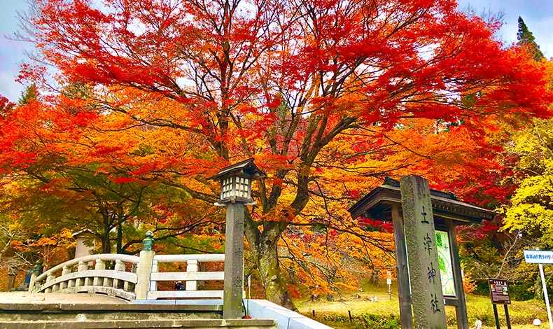 位於豬苗代町的土津神社,供奉著會津初代藩主保科正之,是會津的守護神。每年秋季境內火紅的紅葉總是吸引許多人到此觀賞,紅葉期間也會舉行夜間點燈活動,是當地人賞楓的私房景點。