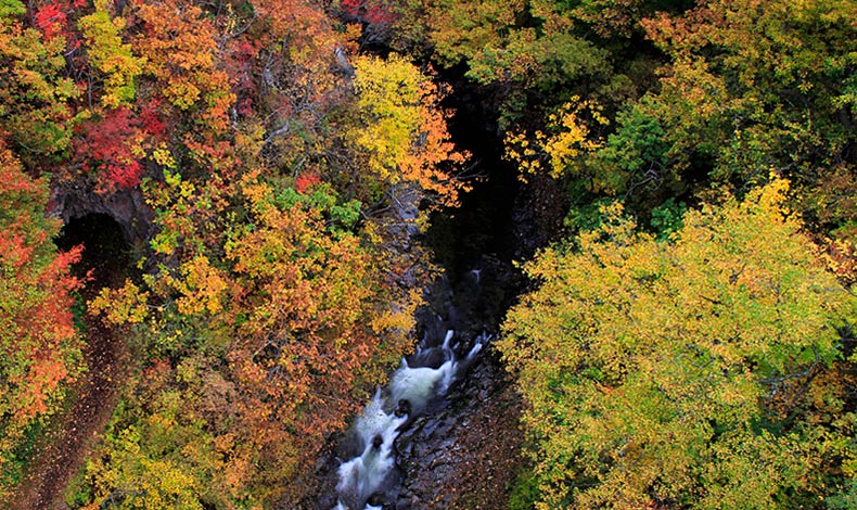 位於下鄉町的觀音沼森林公園,秋季時沼澤的周圍環繞著各種顏色的草木,搭配紅葉倒映在水面形成的美景,令人驚艷,可以說是當地人氣的賞楓景點。