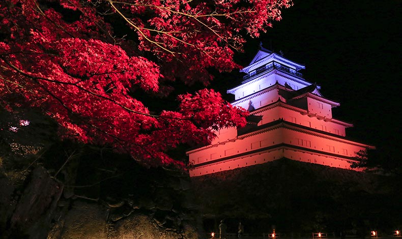 會津若松市的象徵,日本國內唯一赤瓦天守閣,同時也是日本百大名城之一。四季風景優美,春季和秋季也是福島著名的賞櫻賞楓景點。