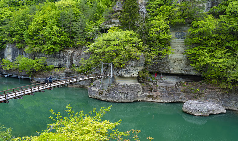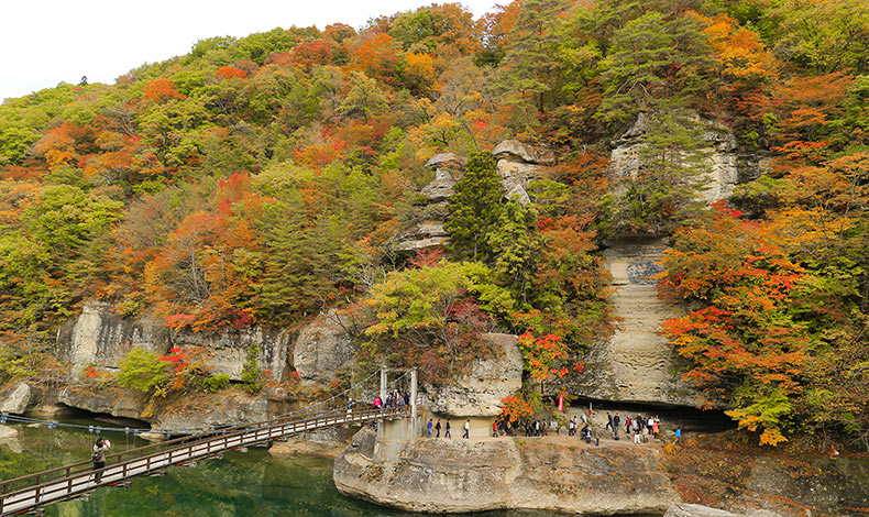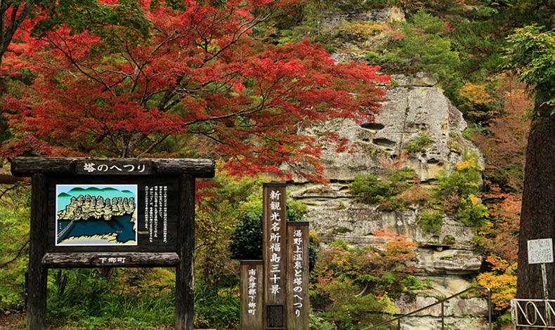 約100萬年前經過阿賀川的侵蝕與風化作用而形成彷彿高塔一般聳立的斷崖,形狀奇特,在1943年被指定為國家天然紀念物。四季皆可欣賞不同美景,尤其是10月下旬秋季紅葉時節最為人喜愛,夏季新綠的景致也非常值得到訪。