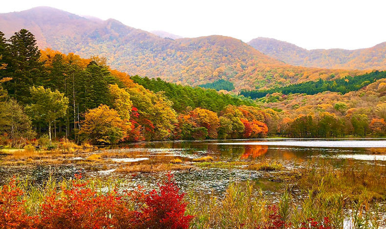 觀音沼森林公園,四季風景優美,秋季紅葉盛開時,紅葉倒映在沼澤的水面上,形成一幅如畫般的絕景,美不勝收!吸引許多攝影師前來拍攝。這裡遊步道整備完善,很適合一邊悠閒的散策,一邊觀賞紅葉。