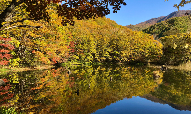 曲澤沼與大澤沼是由磐梯山火山噴發後形成的沼澤,這裡可以說是裏磐梯隱藏版的賞紅葉景點,秋季紅葉倒映在水面上,形成紅葉水鏡的絕景,不僅令到訪的遊客著迷,也吸引許多當地攝影愛好者到此取景拍攝。