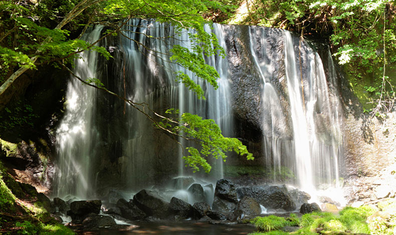 位於安達太良山山麓腳下的袐境瀑布「達澤不動瀑布」,是豬苗代新八景之一,高10公尺寬16公尺宛如隱藏在樹林裡的水簾,湍急流水帶著涼涼的微風,令人心曠神怡。健行步道平緩,於夏天及紅葉時最適宜來拍攝,潺潺流水搭配新綠或紅葉,真是渾然天成的美景。