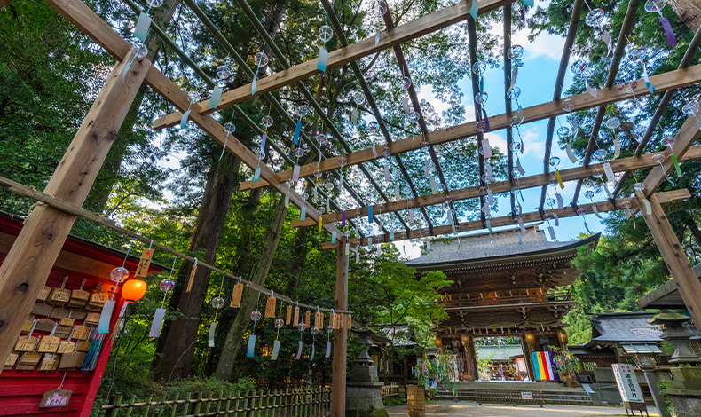 伊佐須美神社是岩代國一之宮,也是會津的總鎮守,擁有超過2000年的悠久歷史。神社以祈求強運、方位化解、厄除、事業發展、五穀豐收與締結良緣等靈驗著稱。境內珍藏多件國家與縣級的重要文化財,並舉辦包含「御田植祭」在內的多項傳統祭典。佔地約2萬坪的神域中,不僅有「會津五櫻」之一的薄墨櫻,還有縣指定天然紀念物「飛龍之藤」,以及盛開各色花菖蒲的外苑菖蒲園,是一處融合自然風光與歷史文化的參拜名勝。