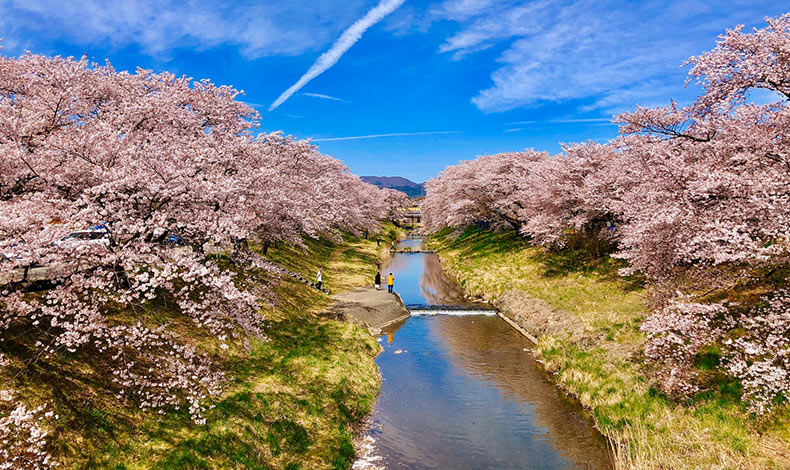 距離喜久田站徒步約3分鐘的賞櫻名所。藤田川兩旁約三公里的染井吉野櫻,在每年的4月中旬至下旬盛開,櫻花倒映在川面的美麗景色,總是吸引很多遊客到此拍照賞櫻。