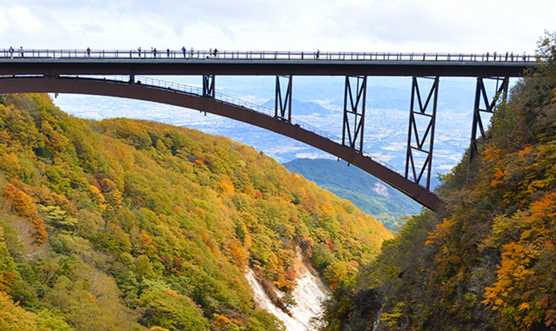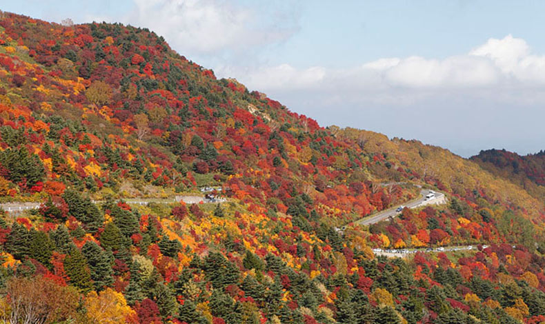 磐梯吾妻SKYLINE是福島人氣前三名的紅葉名所,而這裡的道路也被選為日本道路百選之一,每到秋季時紅橘黃等多種顏色的葉子佈滿整個山頭,非常壯觀,磐梯吾妻SKYLINE上的天狗之庭、不動沢橋都是攝影師們最愛的拍照景點。