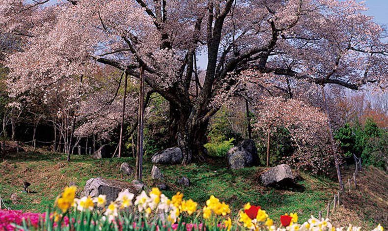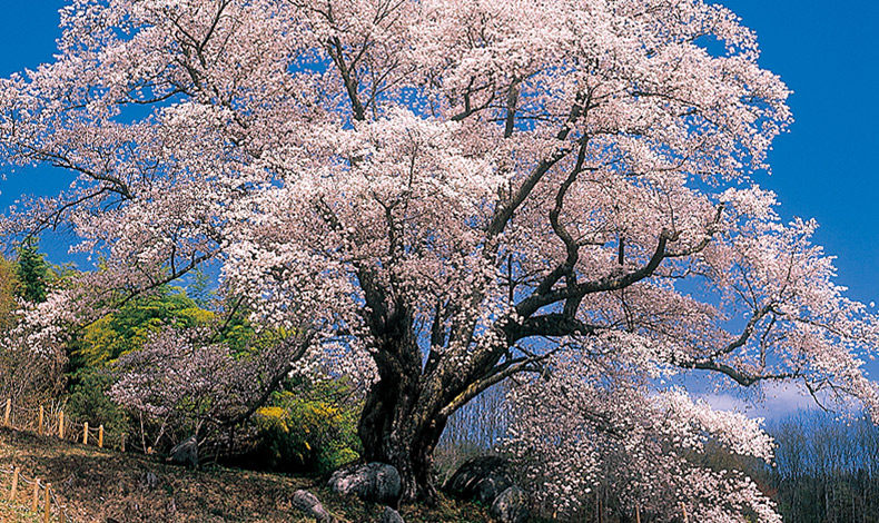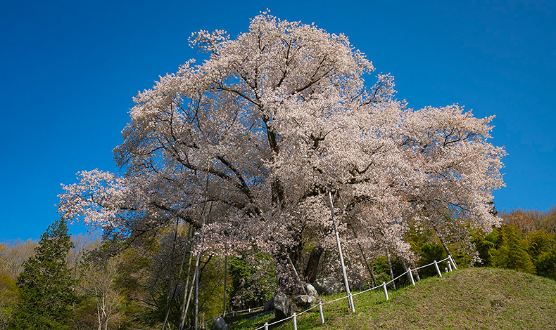 位於福島縣古殿町的越代之櫻,是一棵樹齡400年高約20公尺的巨大山櫻木,不僅是縣指定的天然記念物,也被林野廳選為「森林巨人百選之一」,越代之櫻開花的時間比較晚大約在每年的4月下旬~5月上旬,每年花季總是吸引不少觀光客前往賞櫻。
