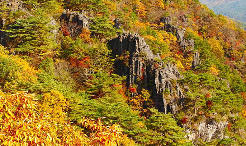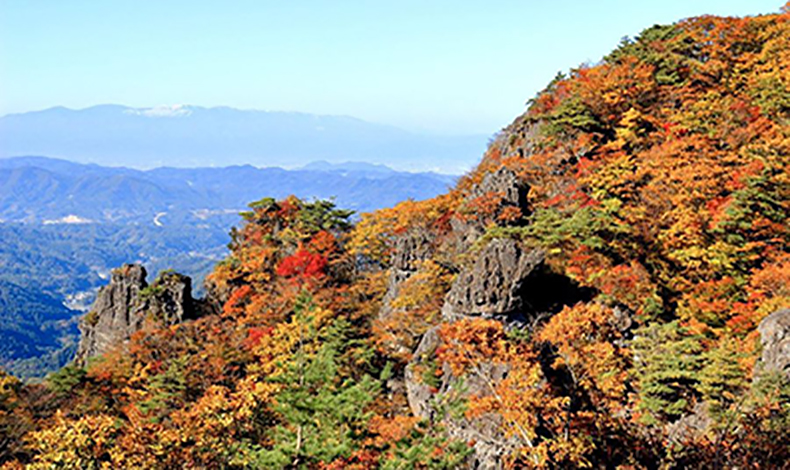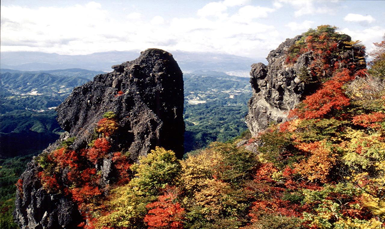 跨伊達市與相馬市的靈山,海拔約825公尺是一座岩石之山,地形以玄武岩為主,經長期的風化侵蝕,造就了許多奇岩怪石矗立的樣貌,山上也有許多的楓樹和櫸樹,秋季葉子轉紅時,靈山也成為福島代表的紅葉景點,奇形怪狀的岩石與繽紛的紅葉交織成的景致,令人嘆為觀止。這裡也被指定為靈山縣立自然公園,也是新日本百名山之一。