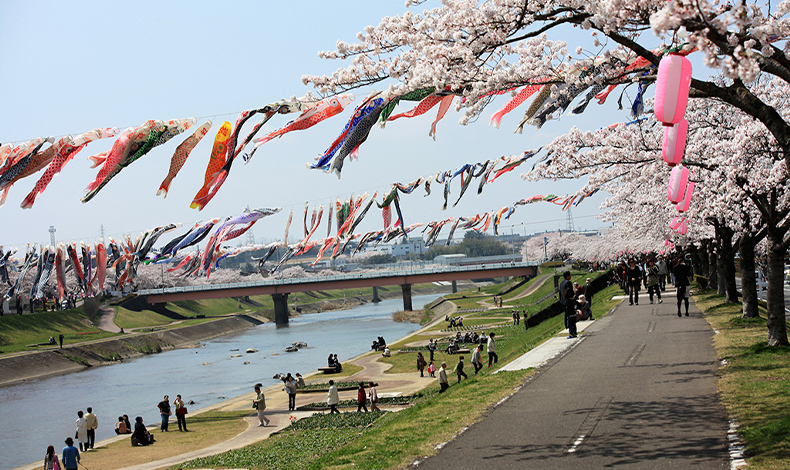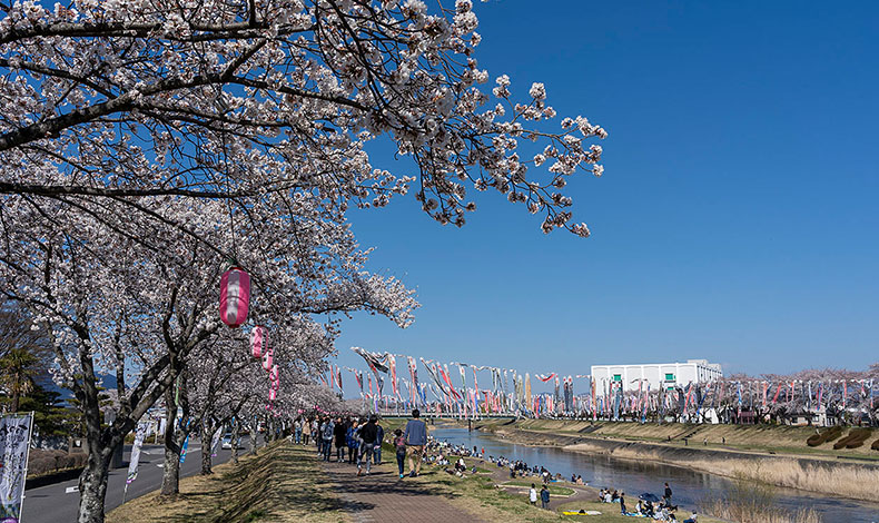 須賀川市當地著名的賞櫻景點「釋迦堂川櫻並木」,每到春季時河岸兩旁約2公里、350棵櫻花樹盛開,非常的美麗壯觀,4月上旬至下旬也會配合櫻花季,舉辦櫻花祭典活動,夜晚也會舉行點燈,每年都吸引不少遊客前往賞櫻。