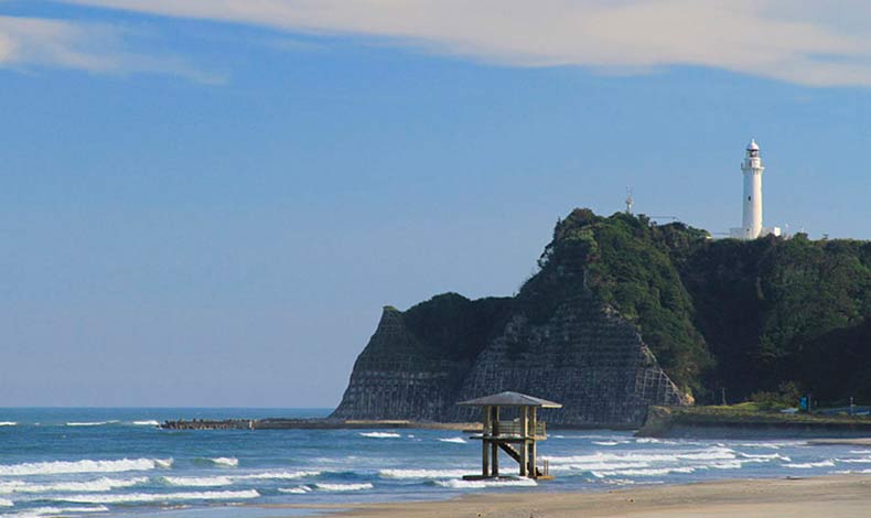 位於磐城市的塩屋埼燈台,建於明治32年(1899年),是少數可以爬到頂端膫望太平洋的燈台,這裡也是入選為「日本燈台50選」之一的人氣景點,白色燈塔與藍色海洋形成鮮豔的對比,如詩如畫般的風景,吸引許多人到訪。日本演歌女王美空雲雀的代表作「亂髮」一曲中的場景,便是這座燈塔,現在燈塔旁仍設置美空雲雀的歌碑,許多歌迷也慕名前來觀賞。