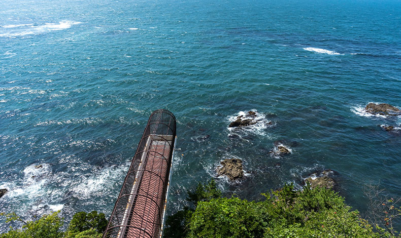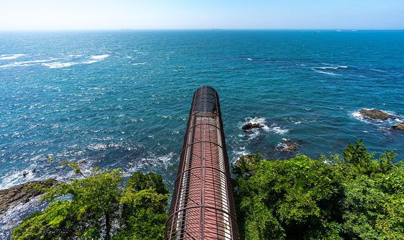 位於福島縣磐城市小名濱的三崎公園,是一個可以眺望太平洋景致的海濱公園,其中突出海面的展望台「潮見台」,可一面吹著潮風一面觀賞海景,在這裡可以感受到海洋絕景的震撼。
