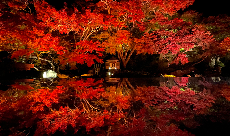 位於南相馬市的平出山寶藏寺,相傳是平安時代前期坂上田村麻呂所建的古剎,秋季時可觀賞到美麗的庭園與顏色鮮豔的紅葉景致,11月中旬至下旬境內也會配合紅葉季點燈!