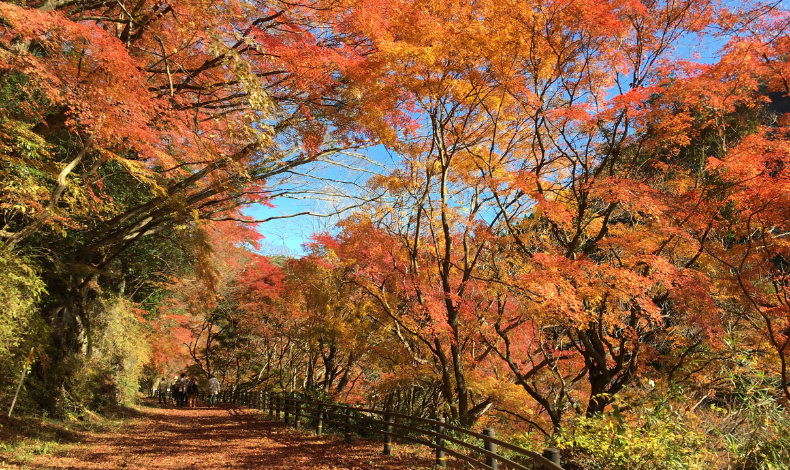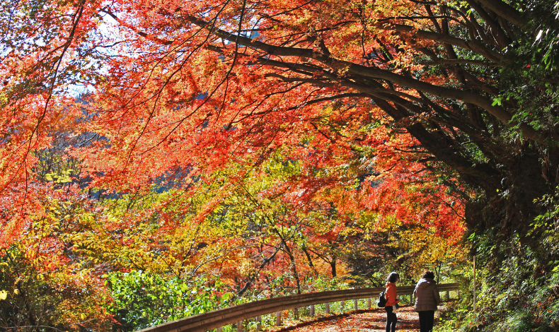 鮫川急流流經的著名景勝地,從龍神橋到見返橋約有3公里的散步路線,步行約需45分鐘。這裡是鮮為人知的賞楓名所,秋季時節,滿山遍野的楓葉染成火紅色,宛如一條燃燒的紅葉隧道。遊客可一邊享受大自然清新的空氣,一邊悠閒散步,非常愜意。