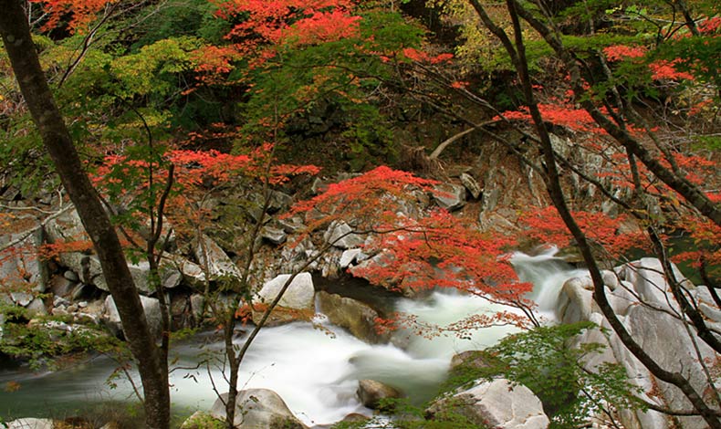 位於JR磐越東線的川前站和小川站之間的夏井川溪谷,長達約15公里,擁有許多瀑布與水淵,四季風景優美。尤其是楓葉正紅的時期,JR磐越東線經過這裡時會刻意放慢行駛速度,讓乘客可從車窗中欣賞溪谷的楓葉。