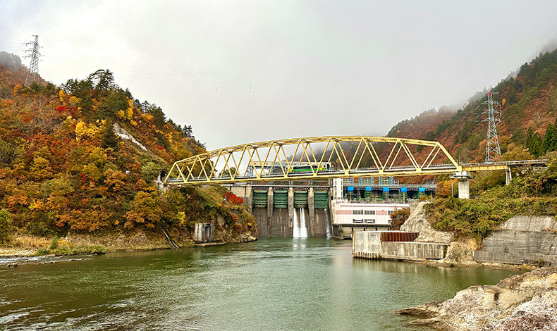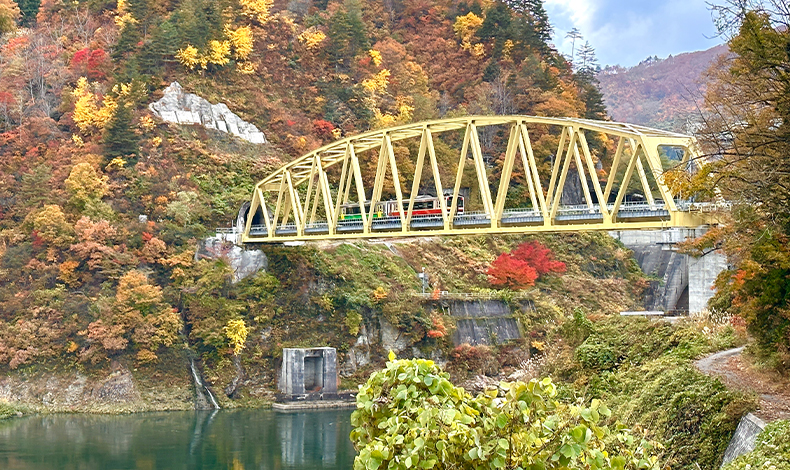 第六只見川橋梁,是一座淡黃色的橋樑,拍攝點位於本名水壩附近,根據角度的不同可以拍到以水壩或變電所的鐵塔為背景的景色,非常的特別。