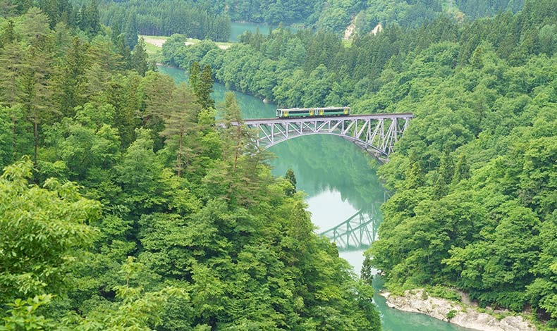 位於尾瀨街道mishima宿的第一鐵橋拍攝點,是所有拍攝點當中最具人氣,也是大家最熟悉的列車經過鐵橋時,在只見川上所形成的倒影非常的美麗,四季風景優美,吸引許多攝影愛好者前往捕捉美景。其中第一只見川橋樑冬季銀白色的雪景,更是堪稱日本東北福島縣的絕景代表之一。