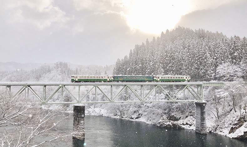 第二鐵橋的拍攝點就在道路旁,距離宮下溫泉或是會津西方站都不會太遠,是一個蠻容易抵達的拍攝點,冬季時列車在雪中緩緩駛入,又形成一幅浪漫景色。