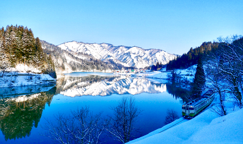 位於金山町的交流廣場旁,這裡也是僅次於第一鐵橋的人氣景點,這裡有著「日本版哈爾斯塔特」之稱,依山傍水如同仙境般的美景,令人有彷彿身在歐洲錯覺。冬季上了雪粧的山脈與大志集落村落的彩色小屋倒映在只見川上的景致,美得令人讚嘆!